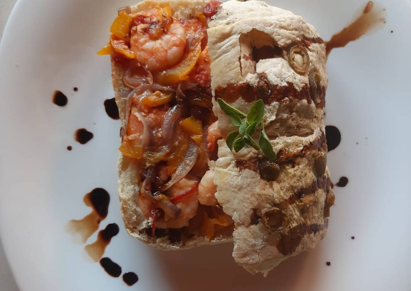 Pan ciabatta relleno de camarón
