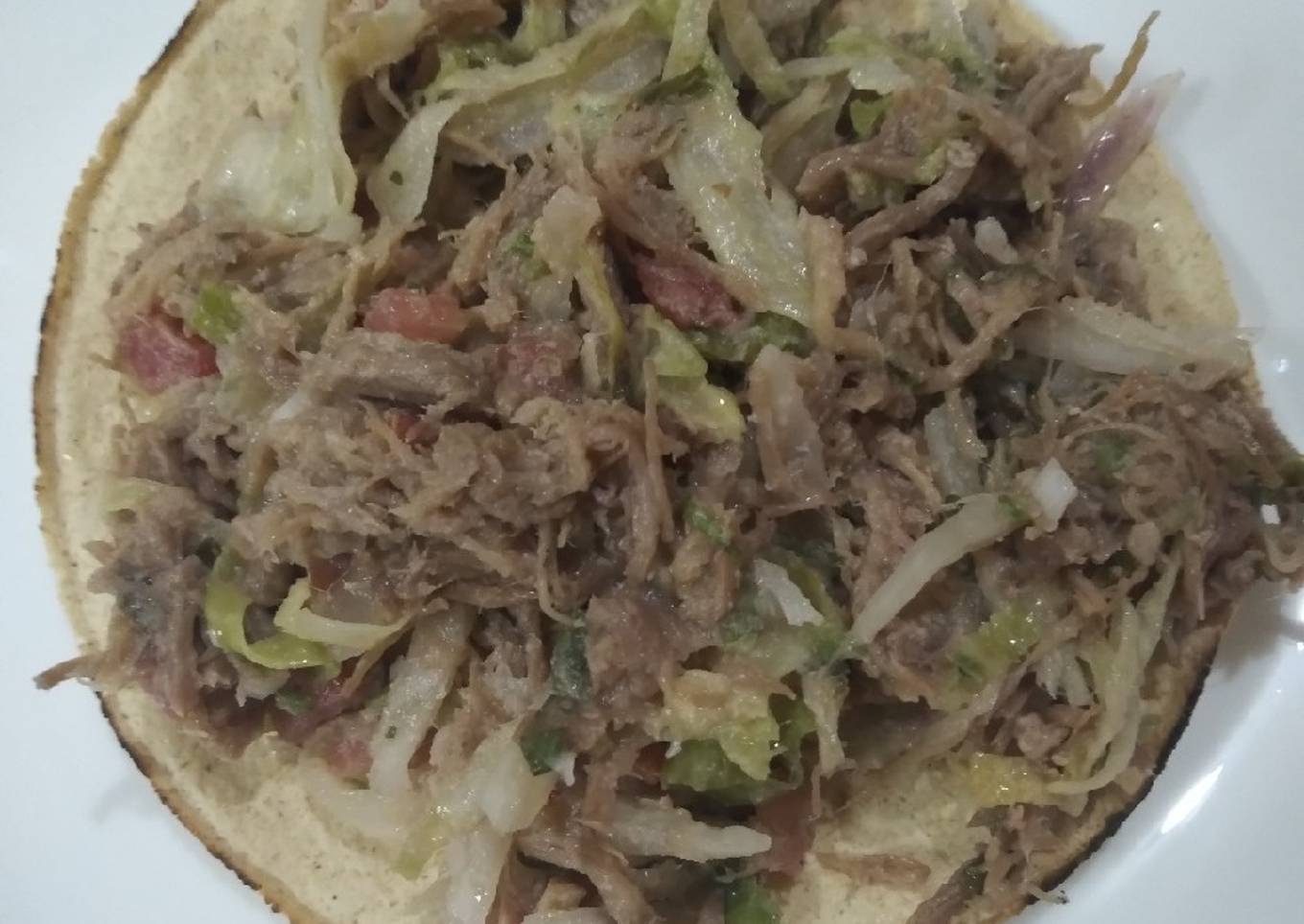 - Ya deshebrada la carne la agregamos junto con la lechuga ya desinfectada y comenzamos a mezclar bien.