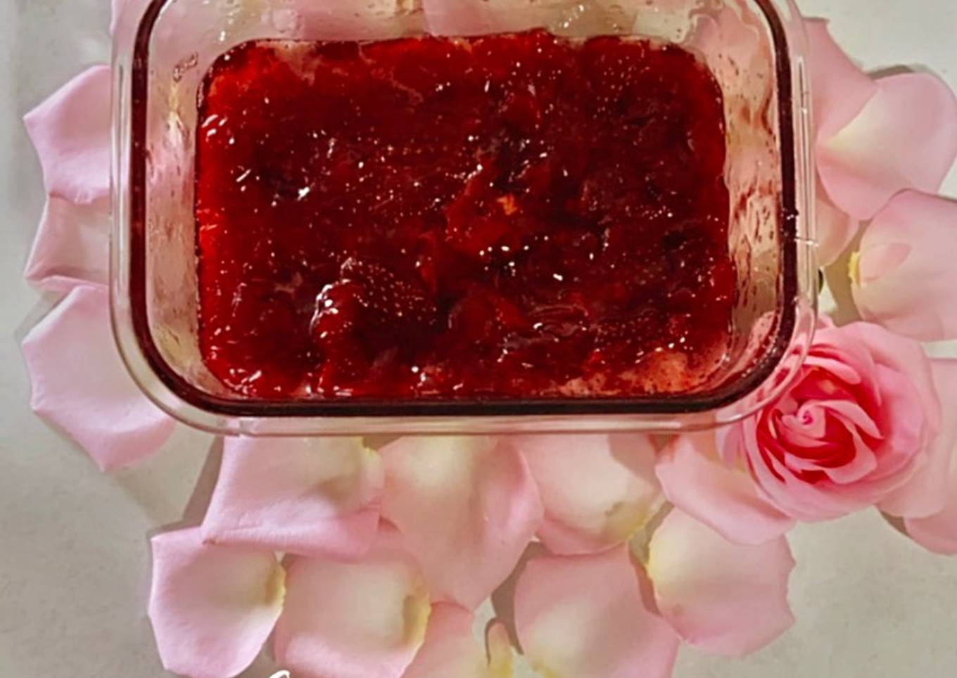 Mermelada de fresa con pétalos de rosa