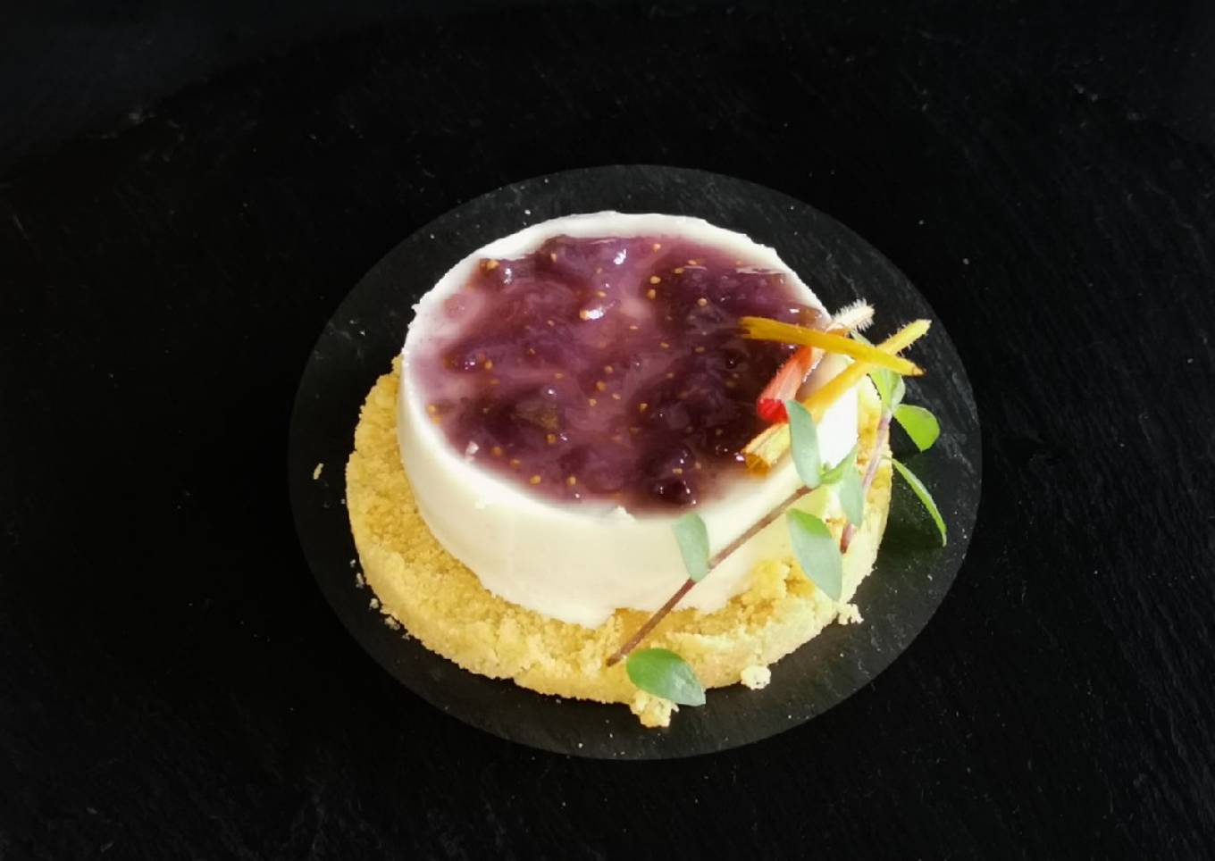 Panna cotta de queso de cabra con coulis de higo y limón