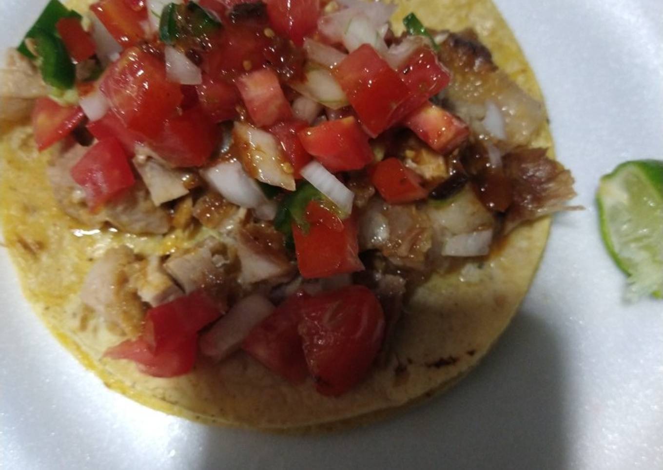 - Acompañar con la salsa que más te agrade yo en mi caso acompaño con salsa pico de gallo (conocida como salsa bandera en el norte), salsa molcajeteada (verde y roja), chiles en escabeche y limón. Claro está que unas carnitas de lujo van acompañadas de unas tortillas hechas a mano y si son de maíz amarillo mejor pero la tortilla se rompe en géneros y gustos. Verde, amarilla, morada, etc. tú eliges la de tu preferencia.