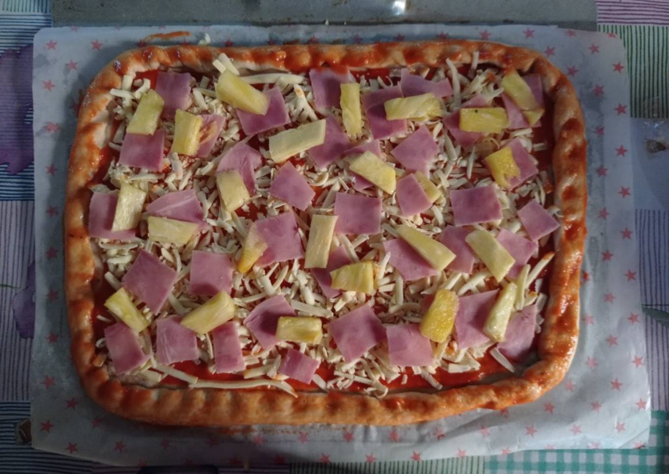 - Agregar también el jamón y la piña.