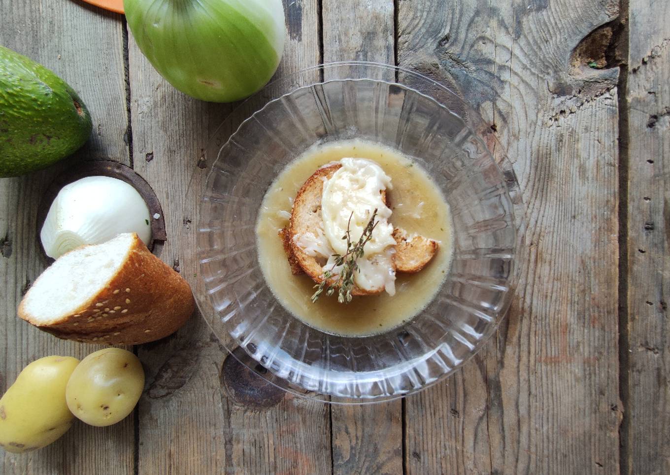 Ingredients and spices that need to be Get to make Soupe aux oignons (Sopa de cebolla):