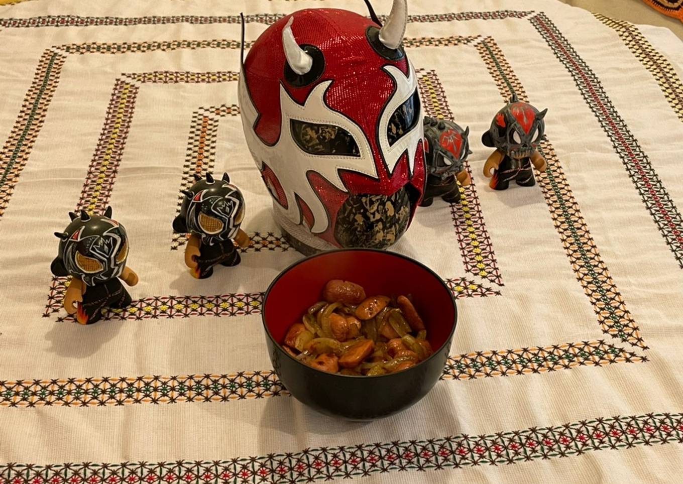 El buen IRON KID, es un luchador que apoya a los Diablos Rojos del Toluca, por lo que hablando de botana para el futbol salieron estas salchichas que pueden ser botana de cualquier día y hora. Picantes, ácidas y deliciosas.