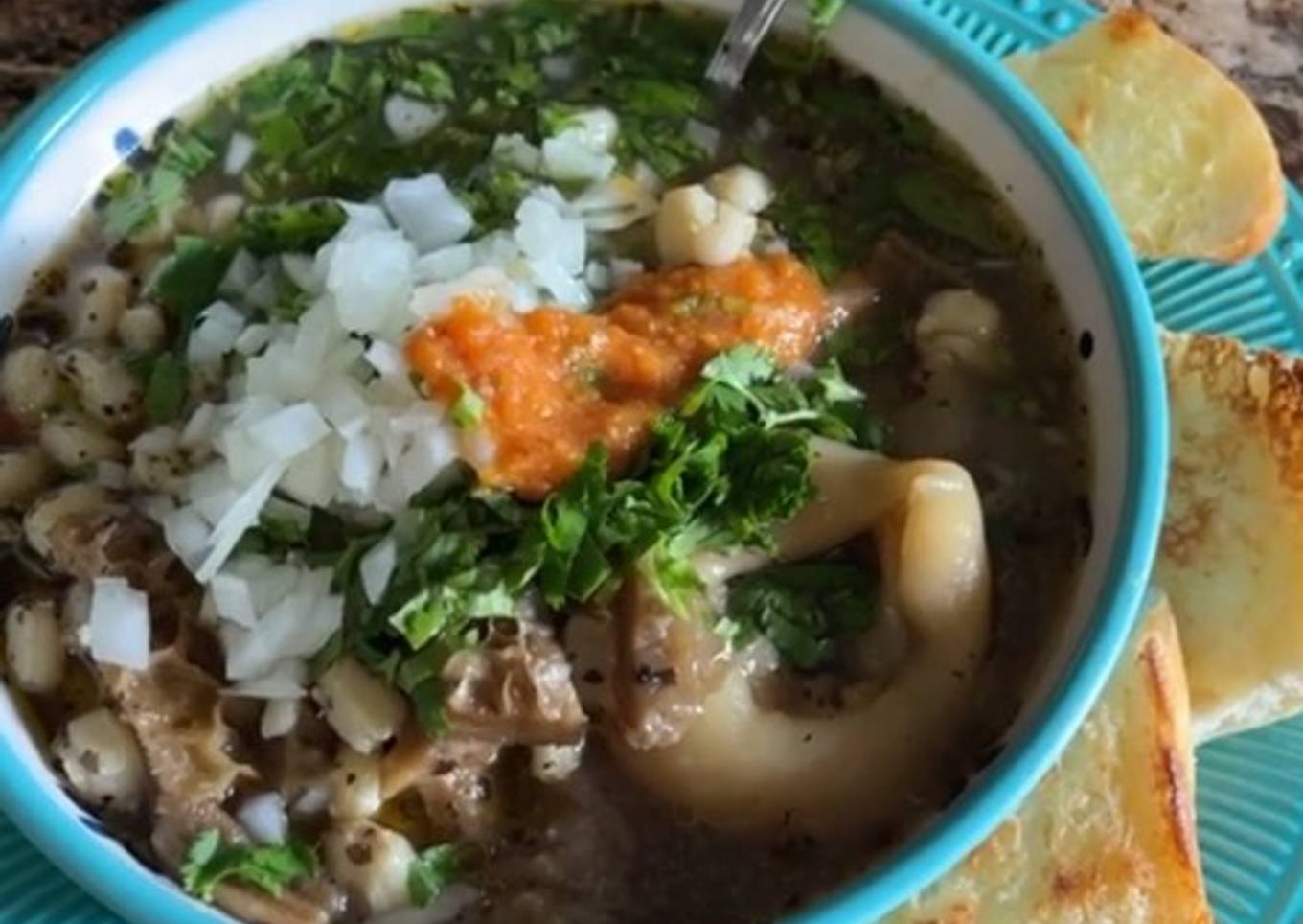 - Servir con cebolla 馃 cilantro 馃尶 lim贸n pan 馃 con mantequilla dorado