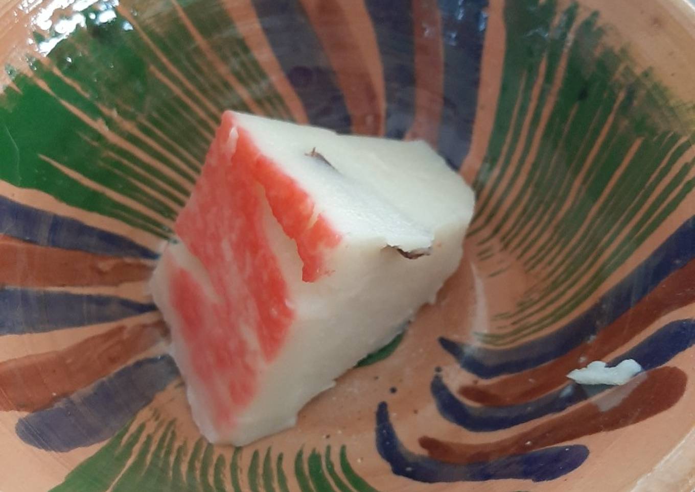 - Cuando ya esté en nuestro recipiente se pone el carmín azucarado, para que se forme la capa roja que queda arriba.