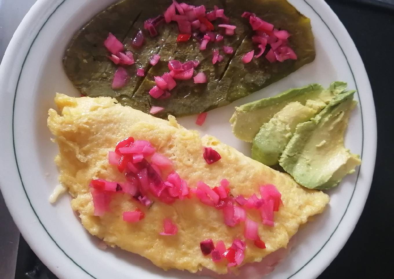 - Se sirve acompañado de un nopal (verdura) y un poco de aguacate (grasa saludable) le agregué un poco de salsa brava (cebolla con chile habanero)