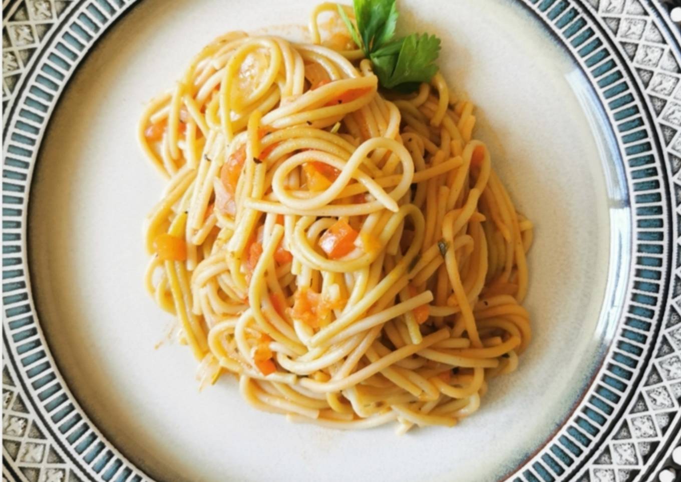 Spaghetti con pasta de vegetales
